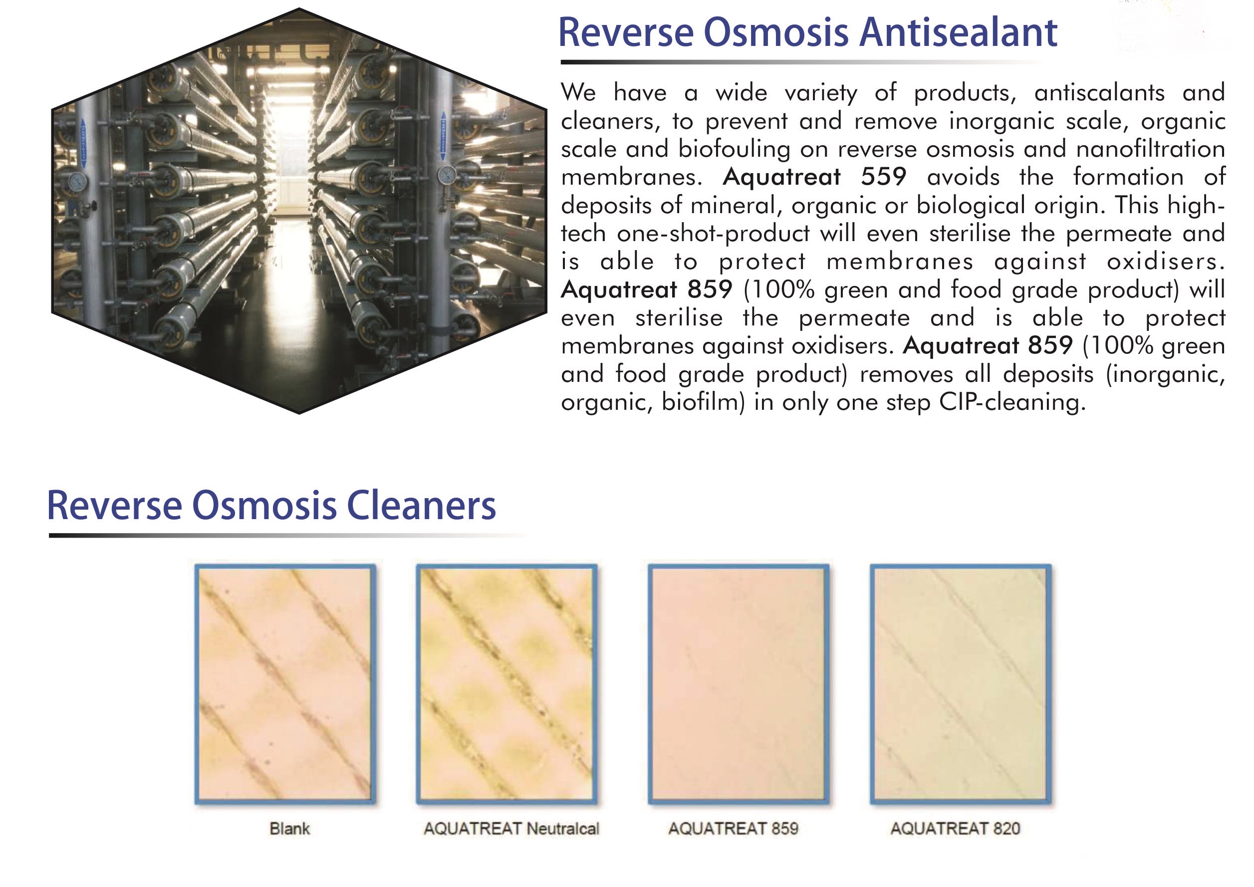 AQUATREAT is producing, for more than 37 years, fine chemicals for water treatment. It has its own laboratory for research and development for chemicals and microbiological water analysis.
