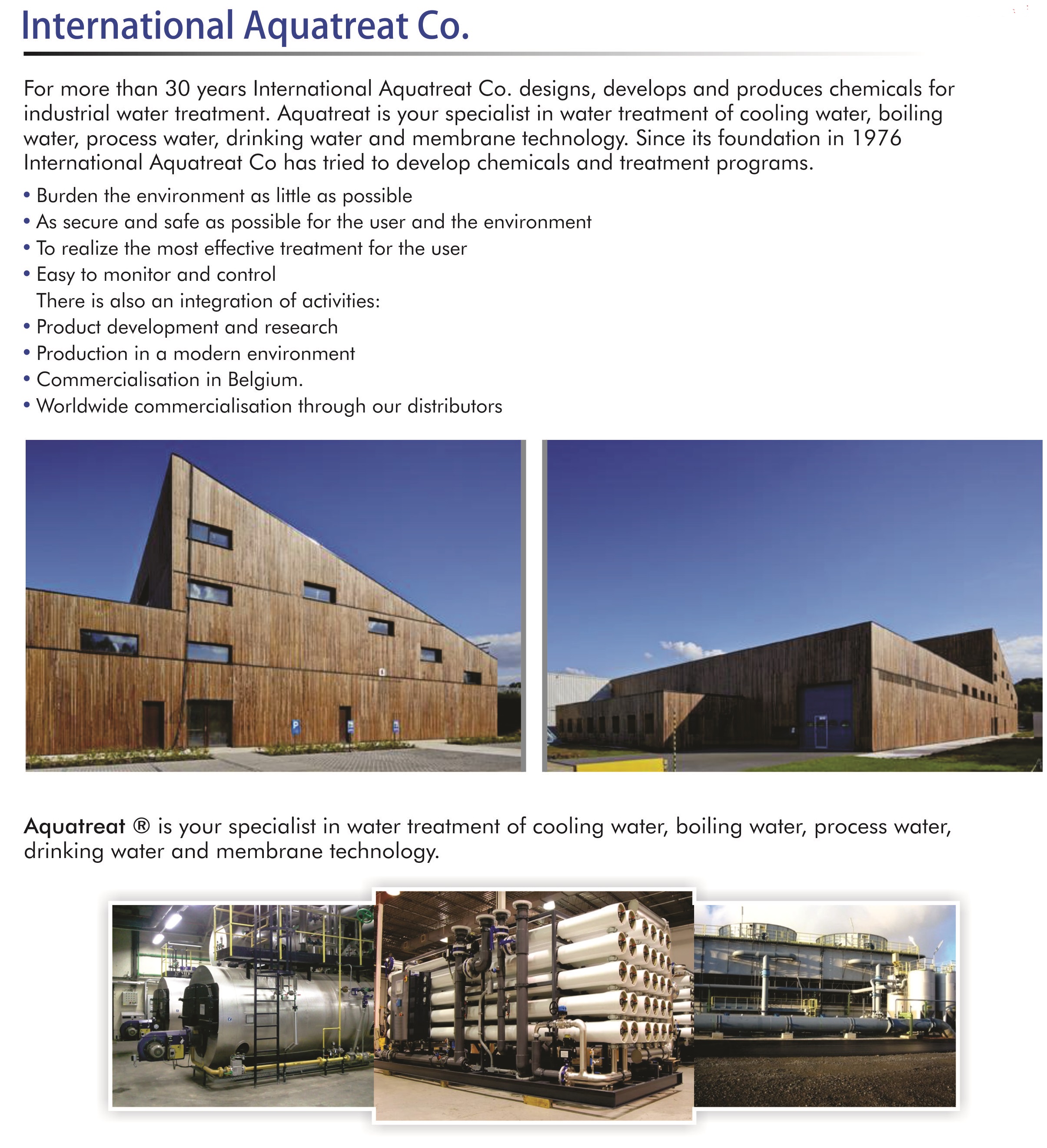 AQUATREAT pacific headquarter of AQUATREAT industrial division, Aarschot specialty chemical company, has been operating in this region for more than 37 years. Over the years, AQUATREAT has continued to expand its operation in Asia pacific region and have now established offices and Service networks in more than 20 countries.